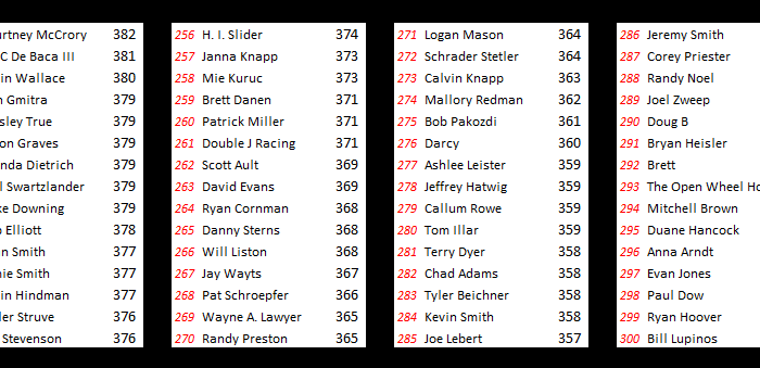 Following a perfect night “500” night from David Gravel, we can finally get a better look at our where our Pick ‘Em players stand heading into Saturday’s finale. Keep in … Continue Reading Night 2 Results – 2017 Knoxville Nationals Pick ‘Em