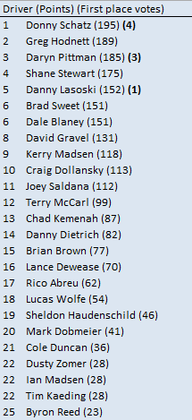 The man from Fargo, North Dakota almost made it a clean sweep in the first week of our National Sprint Car Poll, receiving seven of a possible eight first place … Continue Reading Top 25 Weekly Sprint Car Poll