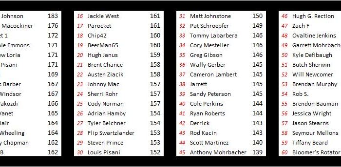 Two nights of beating the weather…we might just get this thing in as scheduled. James Barber charged hard from his 8th place standing following Night #1 to take the point … Continue Reading 2018 Firecracker Pickem – Night #2 Results